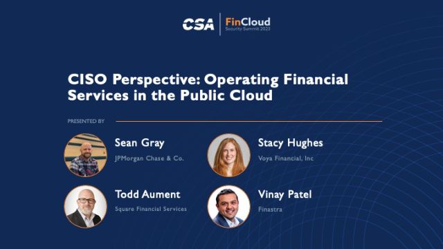 Sean Gray, JPMorgan Chase, Stacy Hughes, Voya Financial, Todd Aument, Square Financial Services, and Vinay Patel, Finastra