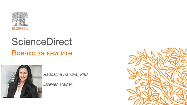 ScienceDirect не само предоставя висококачествени статии в списания, но също така предоставя и глави от книги, което означава, че можете да получите достъп до пълния набор от предметна област, от фундаментални знания до напреднали изследвания на една платформа. Открийте над 42 000 електронни книги, вкл. ръководства и най-важните източници на материали на едно място.