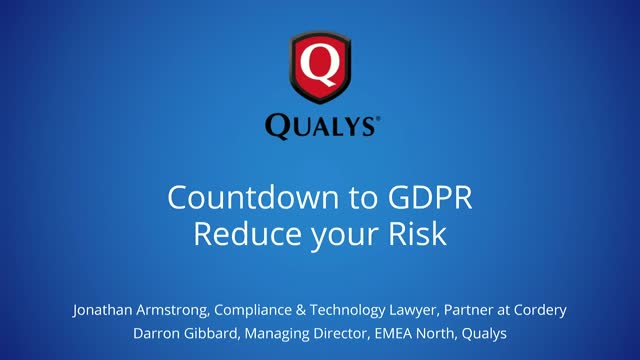 During this webcast, Jonathan Armstrong, Compliance and Technology Lawyer, Partner at Cordery, will answer any compliance questions and highlight the key areas to consider. Darron Gibbard, Managing Director, EMEA North at Qualys, will show you how to know and control your data, assets and suppliers.