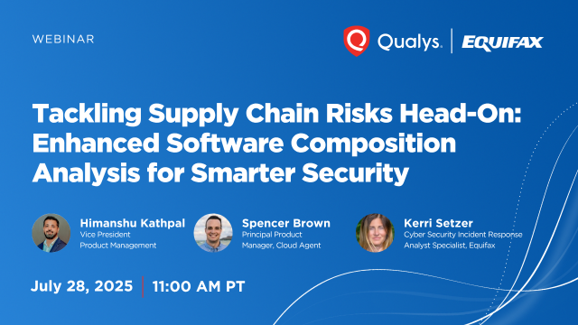 Join Himanshu Kathpal, VP of Product Management at Qualys, for an exclusive webinar on the latest SwCA advancements. Learn how integrated solutions on the Qualys Platform improve visibility, prioritize risk, and boost efficiency to address hybrid environments, alert fatigue, compliance, and supply chain threats.