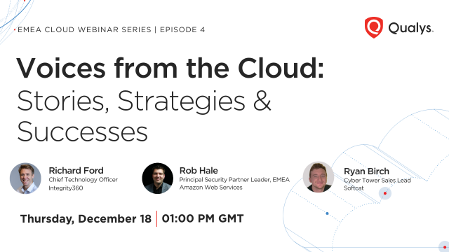 In this special episode of the Qualys EMEA Cloud Security series, you’ll hear from practitioners and strategists from Qualys partners and real-world examples of Cloud Security in practice from our EMEA customers.