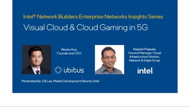 Ubitus is a cloud game technology leader and offers turn-key solutions to help customers build their cloud game businesses. Join Wesley Kuo, the CEO of Ubitus and Nagesh Puppala, General Manager, Visual Infrastructure Division in Intel's Network & Edge Group to understand the successful stories, insights and offering from the partnership ecosystems in powering the 5G cloud gaming solutions for enterprises, game service providers and end users. Presenters: - Wesley Kuo, Founder and CEO, Ubitus K.K. - Nagesh Puppala, General Manager, Visual Infrastructure Division, Network & Edge Group, Intel - Moderator: CB Lee, Market Development Director, Intel