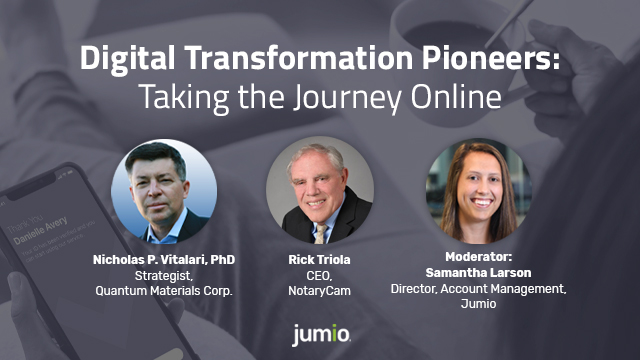 Nicholas P. Vitalari, Strategist - Quantum Materials, Rick Triola, CEO - NotaryCam, Samantha Larson, Jumio