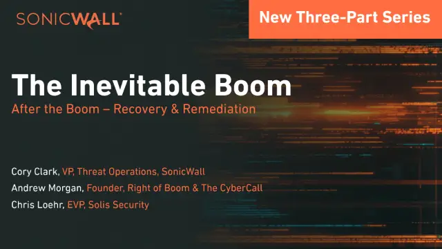 Cory Clark, VP of Threat Operations, SonicWall; Andrew Morgan, Founder, Right of Boom; Chris Loehr, Solis Security