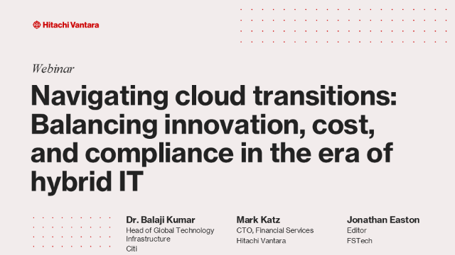 This webinar brings together industry from Citi, Hitachi Vantara, and FSTech to explore the strategic implications of private and hybrid cloud adoption in the era of digital transformation.