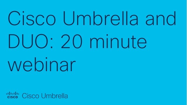 Register today to join this 20 minute webinar with our experts to learn how you can secure access to the internet and protect the usage of cloud apps with Cisco Umbrella and Duo Security. We will showcase best practices for securing your multi-cloud environment and look at establishing trust at the user and device level and using policy to allow access to applications and data.