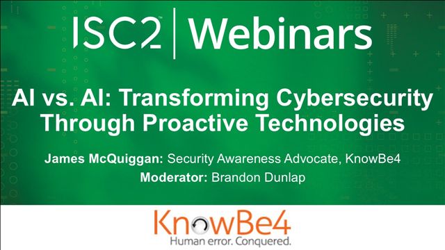 On July 17, 2025 join KnowBe4 and ISC2 at 1:00 p.m. Eastern/10:00 a.m. Pacific for a session where we will discuss how your organization can harness AI-powered agents for real-time threat detection, predictive analytics and automated training.