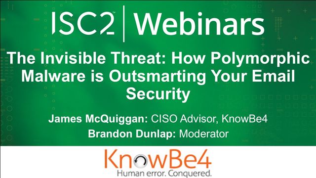 Join us December 9, 2025 at 1:00 p.m. Eastern/10:00 a.m. Pacific for this webinar where Sponsor, KnowBe4 and Host, ISC2 share valuable insights and proactive strategies to strengthen your security framework against sophisticated attacks.