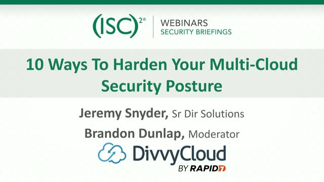 One of the hottest topics in the Information Security world today is Cloud Security. Many organizations are still struggling with their journey to the cloud, how to secure their users, applications and different clouds (public, private and hybrid). Join DivvyCloud and (ISC)2 on August 25, 2020 at 1:00 p.m. BST as we focus on 10 easy and functional ways to harden your multi-cloud security posture. We’ll examine how to build a foundation based on best practices which have been learned through years of helping leading cloud-adopting enterprises stay secure.