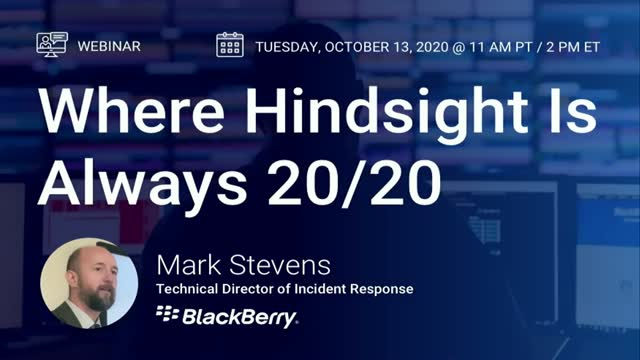 The BlackBerry Incident Response team has years of experience successfully combating cyber attacks for clients around the globe. During this time, they have accrued a deep understanding of the common mistakes organizations make (and threat actors seize upon) over and over again. Mark Stevens, BlackBerry Incident Response Technical Director, will discuss: • How to avoid common mistakes that threat actors look to exploit • Ransomware and other financially motivated attacks • Traits that make a target appealing to attackers • Actionable recommendations for preventing cyber attacks, decreasing the impact and increasing resilience One of the most valuable outputs from incident response investigations are recommendations to prevent the same thing from happening again, and we have seen a pattern of common issues and lessons learned, which we would like to share. Spending time at this webinar learning from other people’s mistakes may save your organization from months of headache in the long run. Register for the Where Hindsight Is Always 20/20 webinar today.