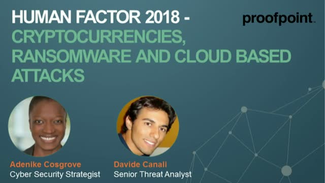 ‘The human factor’—the instincts of curiosity and trust that lead well-meaning people to click, download, install, move funds, and more—is simply more reliable and lucrative than exploits with increasingly short shelf lives. Join our speakers, Adenike Cosgrove and Davide Canali, as they discuss the findings from our Human Factor 2018 report. We’ll talk through the many ways in which threat actors continue to refine their approaches to social engineering with well-crafted lures and schemes that regularly trick even savvy users. During the webinar, we’ll cover: -- Trends in volume and type of attack providing useful insights for both defenders and organizations. -- Ransomware and Email Fraud - how effective have they become and who is being targeted the most. -- How bad actors are using cloud services to their benefit -- Live Q&A with the speakers