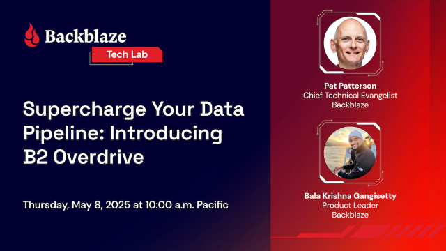 Breakthrough workloads demand breakthrough storage. Backblaze’s B2 Overdrive is here to help with terabit-speed at exabyte scale built for the needs of AI/ML, HPC, and analytics teams—without the sky-high costs. In this session, you’ll learn: How B2 Overdrive delivers up to 1 Tbps throughput for data-intensive workflows Why transparent, flat-rate pricing ($15/TB with unlimited free egress) changes the TCO game How teams are accelerating AI training, model deployment, and real-time analytics with high-throughput storage By registering to this event you agree to receive more information about Backblaze and possibly other partnership products and services. If you decide you are not interested in receiving these communications you will always have the option to opt-out of receiving them by clicking the “Unsubscribe” link provided in the email.