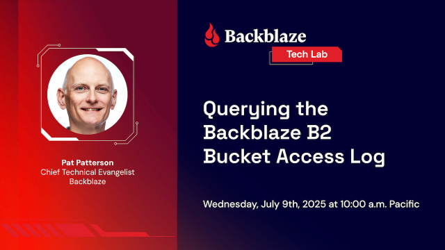 Unlock deeper visibility and control over your data with Backblaze B2's new Bucket Access Log feature. In this webinar, we’ll explore how you can harness this powerful logging capability to gain granular insights into every access request made to your B2 buckets. You’ll learn how to enable and configure access logs, understand the structure and contents of log entries, and apply practical querying techniques to analyze usage patterns, troubleshoot access issues, and enhance your security posture. Whether you’re an administrator seeking better observability or a developer building automated monitoring solutions, this session will provide the knowledge and tools to make the most of Backblaze B2's Bucket Access Logs. Live demonstrations will show how to query logs from analysis platforms such as SQL engines, empowering you to transform raw log data into actionable intelligence. Join us to take full control of your B2 bucket activity and optimize your storage workflows with confidence. By registering to this event you agree to receive more information about Backblaze and possibly other partnership products and services. If you decide you are not interested in receiving these communications you will always have the option to opt-out of receiving them by clicking the “Unsubscribe” link provided in the email.