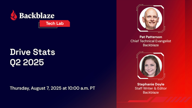 Join the Backblaze Drive Stats team to hear highlights from the Q2 2025 Drive Stats report. About Drive Stats Based on more than 11 years of drive data and covering 30+ hard drive models, the Q2 2025 Drive Stats report uniquely calls out the annualized failure rates of the drives Backblaze uses in operating over three exabytes of cloud storage. Whether you use one hard drive or manage an entire data center, you’re sure to come away with practical and valuable information you can use. By registering to this event you agree to receive more information about Backblaze and possibly other partnership products and services. If you decide you are not interested in receiving these communications you will always have the option to opt-out of receiving them by clicking the “Unsubscribe” link provided in the email.