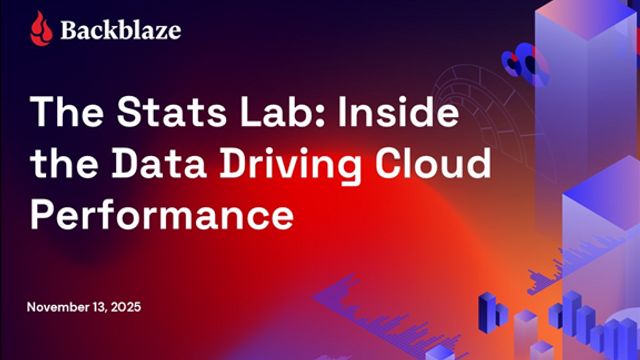 Every number tells a story—and at Backblaze, we openly publish those numbers, for better or (sometimes) worse. Join us for The Stats Lab, where our engineers and analysts unpack insights from our long-running Drive Stats, revamped Network Stats, and brand new Performance Stats reports. We’ll reveal the real-world data powering our reliability, how transparency drives innovation, and what these trends mean for customers operating at petabyte scale. Whether you’re optimizing AI workloads, building resilient media pipelines, or improving cost-to-performance ratios, you’ll come away with new ways to measure and achieve performance excellence. By registering to this event you agree to receive more information about Backblaze and possibly other partnership products and services. If you decide you are not interested in receiving these communications you will always have the option to opt-out of receiving them by clicking the “Unsubscribe” link provided in the email.