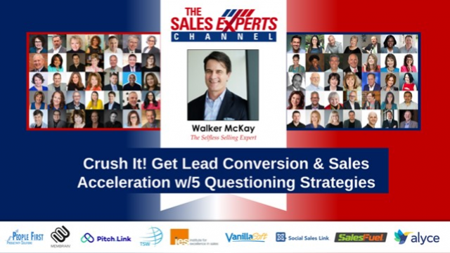 Whether you're a business development rep, sales manager, or CEO, you need a smart sales strategy for prospecting and lead conversion. Your business growth depends on it. But there's a part of that sales strategy you might be overlooking. That would be a mistake, as research about customer engagement suggests this could be the most important element in lead nurturing and sales acceleration. It's also an essential ingredient for building trust and getting the human factor into your cold calling. The missing link is often in the questions asked, the sequencing of questions, and how they're asked. Join Walker McKay, the Selfless Selling Expert, to learn: -- 5 solid questioning strategies for every B2B seller and business owner -- How improving your questioning skills also improves your personal brand -- The questions you should always ask before you shift to pitch or presentations -- How questions get you "in the door" with prospects, at any stage of their buyer journey -- What they didn't tell you in sales training about getting to the truth with your buyers