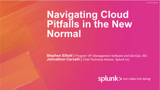 Everyone who is accelerating moving to the cloud knows the benefits. But what are the associated pitfalls and how can you avoid them? In this webinar, Johnathon Cervelli, Splunk Chief Technical Advisor, and Stephen Elliot, IDC Program VP, Management Software and DevOps, will discuss how the right data strategy can help realize the promises of the cloud while avoiding often-overlooked pitfalls – ultimately, empowering organizations to succeed in and accelerate their transformation strategies.