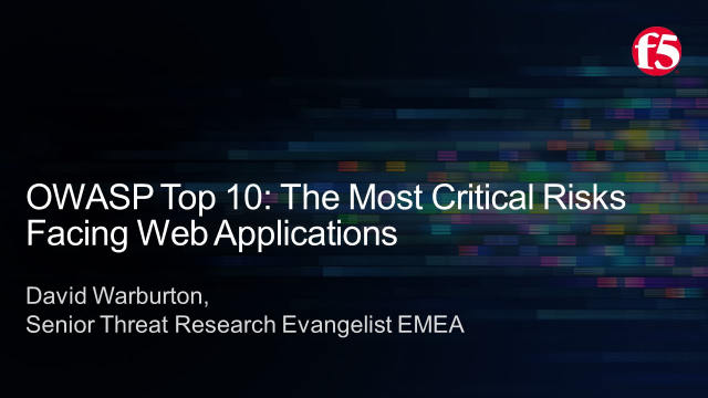 Hindsight is 20/20. That holds true for the OWASP Top 10, the threat awareness report that details the most critical security risks to web applications each year. Join us in exploring the real-world impact of the OWASP Top 10 and why the guidance is relevant in maintaining a foundational security posture in an era of digital transformation. We’ll dive into real attacks that have recently exploited OWASP Top 10 vulnerabilities. In this webinar you'll learn: • How the explosion of open source technology and cloud-based architectures has made the threat surface so challenging to protect against • Why OWASP Top 10 still matters and how to use it effectively to stay ahead of the curve • What could change with the 2020 OWASP Top 10 By watching this podcast, your personal details will be shared with F5 and treated in accordance with the F5 Privacy Notice (https://www.f5.com/company/policies/privacy-notice). You also are signing up to be contacted about F5 products and services but you can unsubscribe at any time.