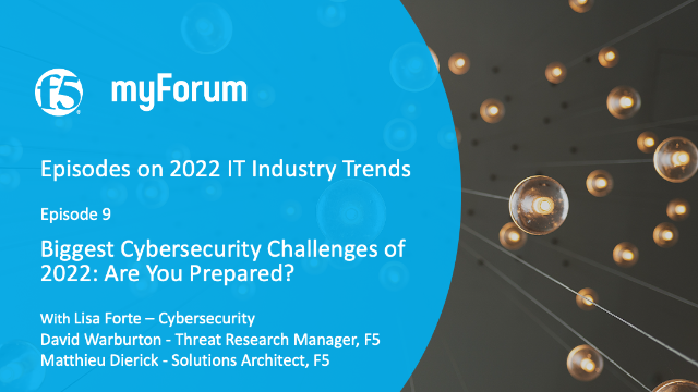 Drawing on the latest research and insights, Bryan Glick (Editor in Chief, Computer Weekly) will be moderating a panel consisting of Lisa Forte (Cybersecurity Expert and Top 100 Women in Tech award winner), David Warburton (Threat Research Manager, F5 Labs), and Matthieu Dierick (Solutions Architect, F5).