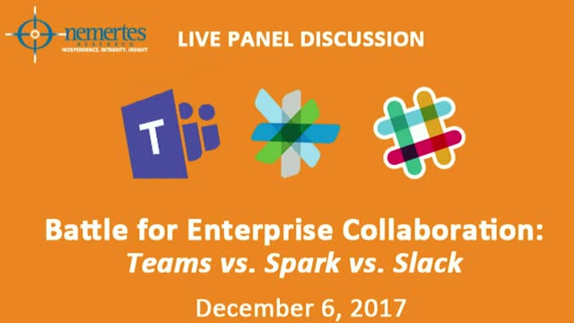 This panel will discuss and debate the various options for enterprise collaboration, with a focus on Teams, Spark, and Slack.