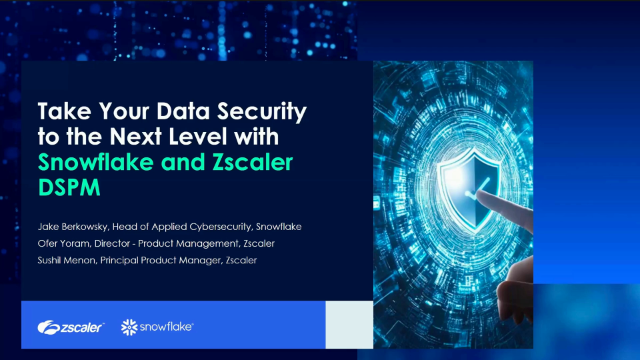 Snowflake empowers organizations to unlock immense value from their data while driving business intelligence and innovation. However, these benefits come with significant security challenges, including data sprawl, entitlement issues, and data exposure risks. Fragmented security tools and the rapid emergence of AI initiatives further complicate efforts to maintain consistent security, leaving teams overwhelmed and increasing the risk of financially and reputationally damaging data breaches. Join us for an exclusive webinar, where Snowflake and Zscaler experts will share actionable strategies to secure data in today’s modern and complex environments. Learn how to effectively navigate Snowflake's shared security responsibility model to safeguard sensitive data, achieve regulatory compliance, and maintain agility and usability. In This Session, You Will Learn To: 1. Gain Clarity: Identify common data security challenges and critical gaps in securing modern data environments 2. Master Risk: Discover advanced risk management tactics leveraging the combined capabilities of Snowflake and Unified Zscaler DSPM (Data Security Posture Management) and DLP (Data Loss Prevention) 3. See It in Action: Review real-world use cases with practical implementation insights demonstrating measurable security improvements 4. Apply Instantly: Access actionable best practices and strategies to protect your data—starting today