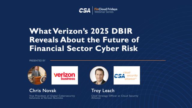 In this FinCloud Friday webinar, Troy Leach, Chief Strategy Officer at CSA, and Christopher Novak, Vice President of Global Cybersecurity Solutions at Verizon Business, will unpack the report’s most critical findings and connect them to emerging cloud and AI threat dynamics. The discussion will explore: