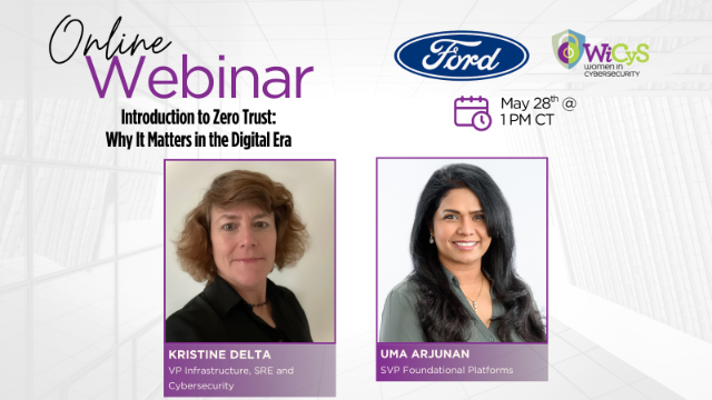 Please join speakers from WiCyS Strategic Partner Ford for this session, which will outline the principles of Zero Trust and how they are relevant in the Digital Era.