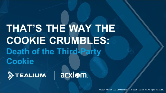 Cookies have left breadcrumb trails for marketers to follow for the last 20 years, but what happens when those trails disappear? As Google and Facebook continue to ring-fence the ad spend world how do you make sure you can continue to execute your digital advertising campaigns successfully? Marketers who are ready for these changes will not only survive in the coming cookie-less world – they will thrive! Questions to ask yourself: Is your data strategy in order, and do you have plans in place to successfully utilise your first-party data? These are questions to answer now so you are equipped to manage the journey ahead! Join Acxiom and Tealium as we explore how the market is evolving away from third-party cookies and give you the best alternatives and actions you can be taking now to set yourself up on the right path. Why should I attend this webinar? To learn: - How to survive third-party cookie loss and boost your digital marketing - How the move away from third-party cookies could affect your media spend and ROI - Which alternatives and actions you can take now to be prepared