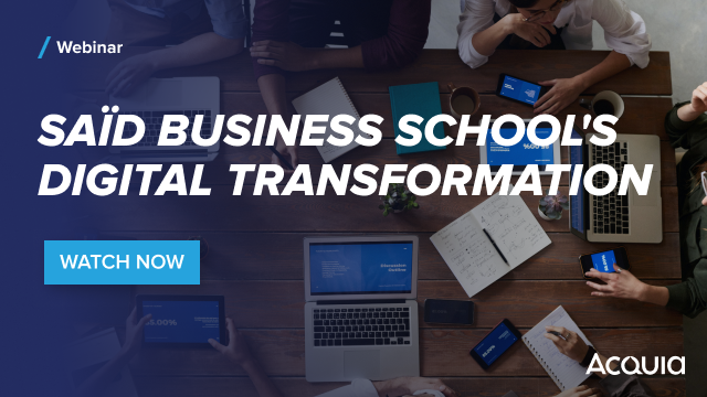 “You need a microscope, telescope, and crystal ball, all at the same time”- Jyotveer Gill on providing a superior Digital Experience to both current and prospective students. In this interview, Tom Bianchi (VP Marketing EMEA at Acquia) sits down with Jyotveer Gill (Saïd Business School, University of Oxford) to discuss the extensive digital transformation that has taken place there over the last 18 months. Highlights include: - Jyotveer’s top three tips to provide an excellent digital experience - How Saïd Business School digitised over 100 programmes including eMBA, MBA, and Diplomas over the past 18 months - The future of hybrid teaching and learning including a ‘Flipped Classroom’ approach
