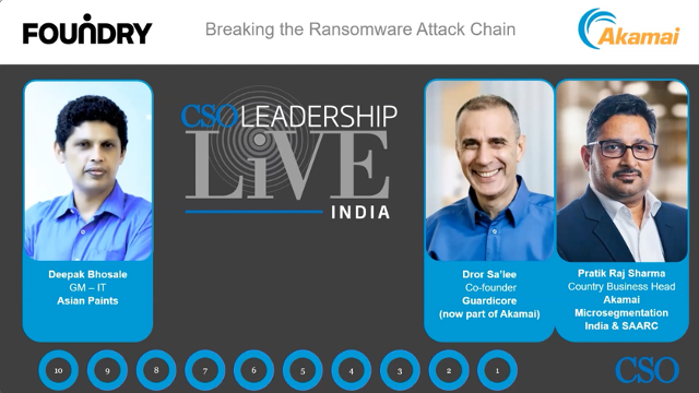 Join CSO Leadership Live, an exclusive session with Deepak Bhosale, GM - IT, Asian Paints as he discusses about Breaking the Ransomware attack chain along with Dror Sa’lee, Co-founder, Guardicore (Now part of Akamai) and Pratik Raj Sharma, Country Business Head, Akamai Micro Segmentation, India & SAARC.