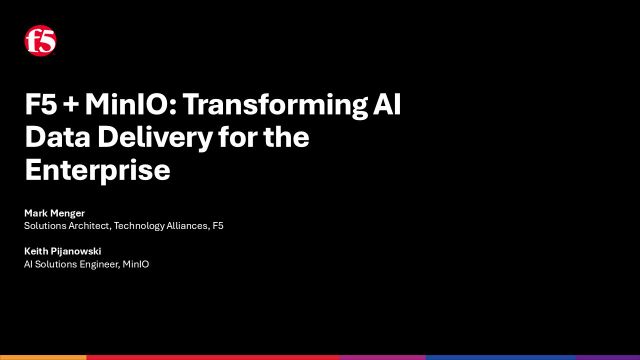 Join us for an exclusive webinar with Mark Menger, Solutions Architect at F5, and special guest Keith Pijanowski, AI Solutions Engineer at MinIO. Discover expert insights on how F5 and MinIO are transforming enterprise AI data infrastructure.