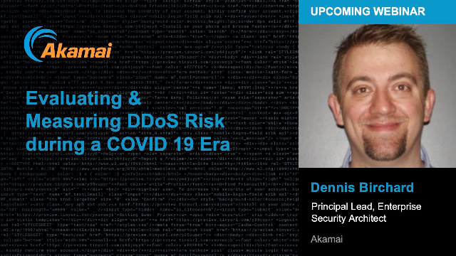 A DDoS attack could be a ruse to distract your focus from other key processes, such as fraudulent transactions, or outright destruction of data. "At Alliant we wanted the brains behind DDoS mitigation and that's what Prolexic gives us." said Bill Podborny, Chief Security Officer, Alliant Credit Union. The number of DDoS attacks instantly mitigated via the Prolexic platform has increased exponentially over the past four years. Akamai mitigates DDoS attacks against its Prolexic platform via proactive mitigation controls, in 0 seconds and with no customer impact. But, what about DDoS attacks in the COVID-19 era? Join Dennis Birchard, Akamai’s Principal Cloud Security Architect, to learn more about: •Recent DDoS Attack Trends Q1-2020 •How does Prolexic protect Akamai customers and why does it matter •Mitigation Strategies re: Proactive vs Reactive controls •Work from home and how our customers have changed their risk •How to interpret DDoS industry mitigation SLAs