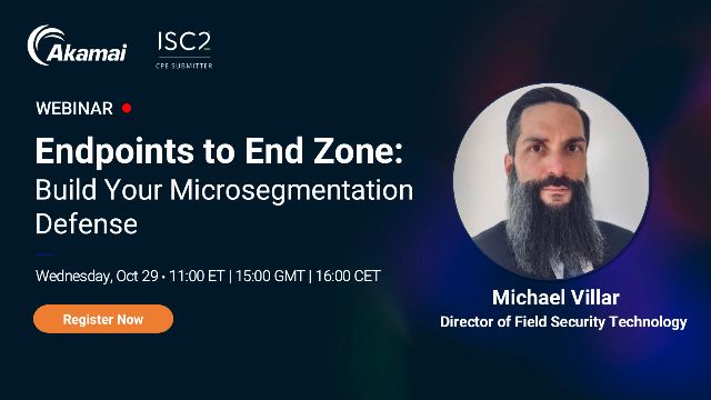 Join Akamai's Director of Field Security Technology, Michael Villar, for a live webinar where we break down the microsegmentation playbook—what it is, how it fits into a Zero Trust architecture, and how to deploy it for maximum visibility and control. Whether you're defending your enterprise against lateral movement or isolating critical workloads, microsegmentation is your MVP for reducing risk. In this session, you'll learn: - How to tackle lateral movement and insider threats - Key components of a successful microsegmentation strategy - Real-world use cases and deployment tips Akamai is an approved ISC2 CPE Submitter Partner. Earn CPE Credits by watching our Webinar and providing us with your ISC2 Member ID number either in 'Question' or 'Rate this' section.