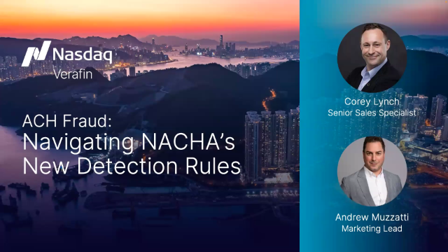 Originally Presented: August 16, 2024 Last year, NACHA’s ACH Network saw its eleventh straight year of growth exceeding $1 trillion as demand from consumers for electronic payments increased — and fraudsters are following the money. As Business Email Compromise (BEC) and other authorized push payment (APP) scams cause concern in the financial industry, NACHA has issued new rules to strengthen their network against these scams by promoting detection across the entirety of ACH payments — from origination to receipt. Join Corey Lynch, and Andrew Muzzatti from Nasdaq Verafin, as they do a deep dive into these new rulings, and how Nasdaq Verafin can help navigate financial institutions through this new ACH landscape.