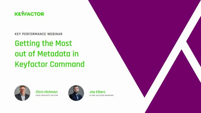 Join our CSO, Chris Hickman and Client Success Manager, Joe Elbers as we kick off our first-ever customer webinar series. In this 60-minute demo and training session, we'll explore the many ways that you can use metadata to enhance and streamline certificate management. We'll also walk through the different types of configurable metadata, how they can be used, and best practices and deployment strategies to get the most out of metadata in the Keyfactor platform.