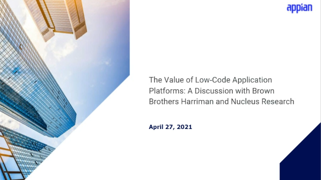 The need for organizations to keep pace with a rapidly evolving business landscape and digital transformation is increasing expectations of the IT department. IT is being challenged to facilitate business transformation through automation and rapid application development while maintaining existing systems to ensure undisrupted operational uptime. All while needing to overcome three core challenges: - Skills shortage - Technical debt burden - Shadow IT Hear IDC and Appian discuss how embracing low-code application development helps organizations overcome these challenges to evolve into business value and innovation drivers. Learn about the differences in low-code development platforms and what to look for in enterprise-grade solutions, and hear how top-performing IT organizations are embracing low code application development to: - Improve efficiency through speed and ease of development - Increase ROI and synergistic benefits from integrating with existing and external systems - Deliver agile, robust solutions that are easily adaptable to changing business requirements without incurring technical debt