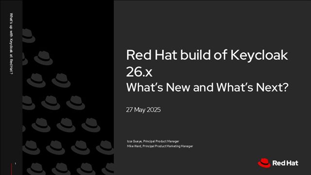 This session will provide an introduction / review of the Red Hat build of Keycloak and its target applications as well as provide an overview of the latest new features introduced in the Red Hat build of Keycloak 26.x. Join us to gain insight in several key features such as organizations, new support for fine-grained admin permissions and token exchange, rolling update, and many other features and improvements. We will also cover what's coming next from a roadmap perspective.