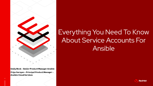 Service accounts are being used as token-based authentication within Ansible and its services interacting with Red Hat’s Hybrid Cloud Console. In this webinar, we’ll go over what service accounts are, how to make one, and the areas where Ansible Automation Platform has begun integrating with this new authentication method with a focus on Ansible Analytics.