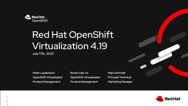 This session will cover advancements in Red Hat OpenShift Virtualization 4.19. 4.19 is now generally available and delivers expanded capabilities for hybrid cloud infrastructure, enhanced VM management, and global scalability. The features span networking enhancements, live storage migration (tech preview), improved I/O performance for databases, automatic VM workload balancing based on CPU utilization (technology preview). The release also simplifies VM management with tree-view navigation, right-click actions, and advanced VM search (technology preview). The Migration Toolkit for Virtualization 2.9 includes pivotal features like storage offloading (technology preview) to accelerate cold VM migrations. Interact directly with the product managers delivering these features including demos of some of the key functionalities.