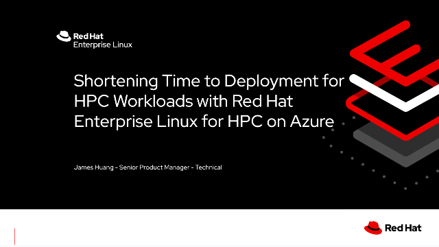 Modern HPC workloads can be very complex, requiring a long list of libraries, tools, and software packages from many different sources, and blending between on-premises and cloud infrastructure. This is why Red Hat is excited to announce the launch of a new offering: Red Hat Enterprise Linux (RHEL) for HPC on Azure. RHEL for HPC on Azure provides the "easy button" for deploying HPC workloads on Azure infrastructure by pre-installing many of the common packages needed for HPC, including hardware accelerator drivers, tools, and libraries. Come learn about how this new offering can shorten the time-to-value for HPC workloads.