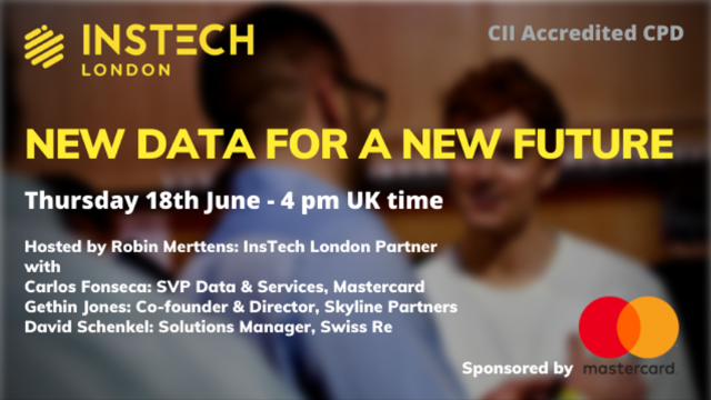 Hosted by Robin Merttens, InsTech London Partner, the panel will comprise of data specialist Carlos Fonseca, SVP Data & Services, Mastercard, Gethin Jones, Co-founder & Director at Skyline Partners and David Schenkel, Solutions Manager at Swiss Re. Together we will explore what Mastercard’s data-led initiative might mean for the insurance industry, the potential value of data insights and how they can be applied to provide broader, better, more certain insurance cover. We are looking forward to having you join us and Mastercard on June 18th at 4 pm BST.