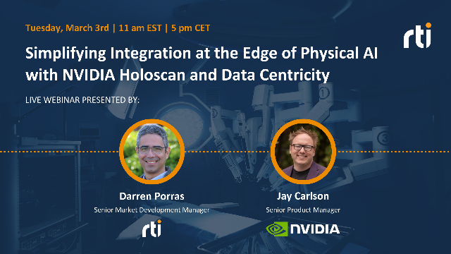 The path to production for AI-enabled medtech systems is often stalled in the integration gap caused by sensor-to-system interoperability and brittle, custom-coded data pipelines. This webinar explores how NVIDIA Holoscan eliminates integration bottlenecks through the data-centric communication backbone of DDS, for real-time inference at the edge.