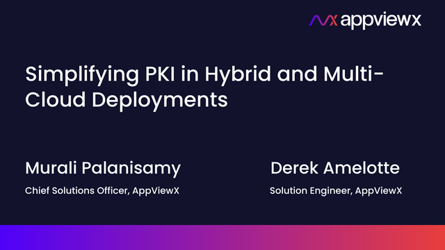 Digital Transformation has become synonymous with cloud adoption. As enterprises migrate their existing applications to the cloud and build new cloud-native ones, how does the traditionally on-premise PKI evolve to meet multi-cloud and hybrid challenges? In the panel discussion Simplifying PKI in Hybrid and Multi-Cloud Deployments, Murali Palanisamy, Chief Solutions Officer at AppViewX, and Derek Amelotte, PKI Solutions Engineer at AppViewX, share insights into how the PKI landscape needs to change with digital transformation and what organizations can do to achieve the delicate balance between security and crypto-agility. Some key highlights from the discussion will be: • How PKI requirements for cloud services are different from on-premise requirements • How enterprises can use their on-premise PKI and extend it to multiple cloud services • How to set up and manage a separate PKI for cloud-native applications • How to use a PKI-as-a-Service to centrally manage and orchestrate multiple on-premise and cloud CAs.