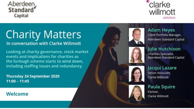Aberdeen Standard Capital's charities team will be joined by a panel of legal experts from Clarke Willmott where they'll be discussing charity governance, stock market events and implications for charities as the furlough scheme starts to wind down.