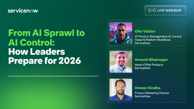 Aneesh Bhatnagar (Head of Risk Products, ServiceNow), Ofer Vaisler (VP Product Management, AI Control Tower and Platform Workflows, ServiceNow) and Usman Sindhu (Product Marketing Director, ServiceNow)