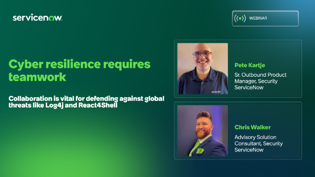 Pete Kartje (Sr. Outbound Product Manager, Security, ServiceNow) and Chris Walker (Advisory Solution Consultant, Security, ServiceNow)