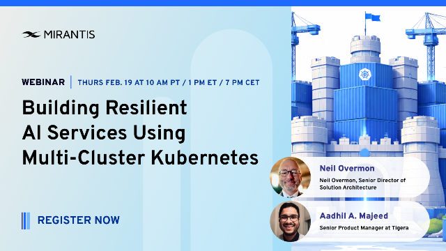 This webinar shows how to design and operate resilient multi-cluster Kubernetes platforms for AI workloads with Mirantis k0rdent AI. We’ll break down a practical reference pattern where training, inference, and shared services run in separate clusters so you can isolate GPU resources, reduce blast radius, and scale each layer independently. On top of that foundation, Mirantis k0rdent AI gives platform teams a consistent way to provision clusters, apply guardrails, and manage lifecycle operations across environments from a single control plane.