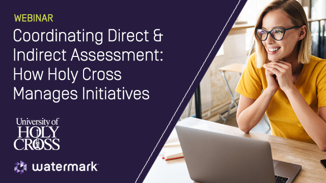 University of Holy Cross’ institutional effectiveness planning process is built on a foundation of direct and indirect measurement, creating a holistic approach that provides a complete view into learning and teaching on campus. In this session, William Luton, Academic Projects Coordinator at Holy Cross, will share how the institution incorporates direct and indirect measures into assessment planning and reporting and how they’re using multiple integrated technology solutions to streamline and support these efforts. You’ll also get helpful advice on how to: - Get faculty bought into these critical processes - Coordinate data collection across systems - Create an effective, timely reporting process This is a replay of a previously recorded webinar.