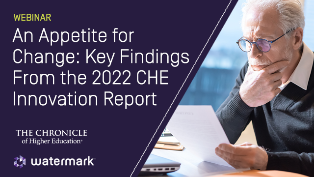 Higher education is facing significant challenges – pandemic enrollment losses, rapid shifts in technology, growing economic pressures – meaning college leaders must grow from institutional stewards into innovators and change-makers. In spring 2022, The Chronicle of Higher Education conducted a survey, underwritten by Watermark, to better understand where innovation is happening in higher ed and on campuses.