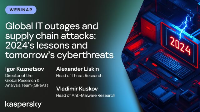 This webinar delves into the risks posed by supply chain weaknesses and global IT disruptions. Hear from top Kaspersky security experts as they reflect on publicly known significant outages and supply chain incidents from 2024, including the faulty updates, Linux and open-source supply chain attacks, notable breaches, and other events.
